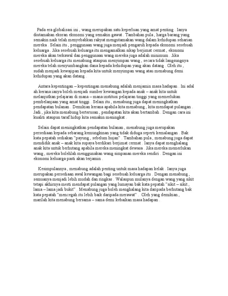 Karangan Pendek Kepentingan Amalan Menabung / Kebaikan Amalan Menabung Dalam Kalangan Masyarakat Karangan